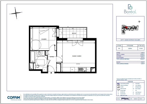 À Châtenay-Malabry au cœur de l’écoquartier LaVallée, dans une résidence neuve certifiée NF HABITAT HQE, à proximité du Parc de Sceaux, des commerces, des groupes scolaires et transports en commun (Tram T10 et RER B Croix de Berny), un appartement de type T2 comprenant une entrée avec placard, un séjour-cuisine de 23.68 m², une chambre de 12.63 m² et une salle de bain avec WC. Le séjour et la chambre s’ouvrent sur un beau balcon de 5.94 m². Le bâtiment est raccordé au réseau de chaleur urbain et à la fibre optique. Un ascenseur, un local vélo et un local poussette viennent compléter cette offre.