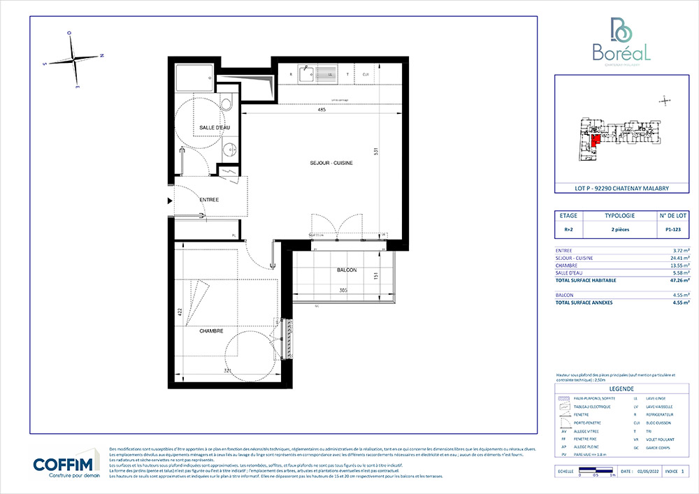 À Chatenay-Malabry au cœur de l’écoquartier LaVallée, dans une résidence neuve certifiée NF HABITAT HQE, à proximité du Parc de Sceaux, des commerces, des groupes scolaires et transports en commun (Tram T10 et RER B Croix de Berny), un appartement de type T2 comprenant une entrée avec placard, un séjour-cuisine de 24.41 m² donnant sur le balcon, une chambre, une salle d’eau avec WC. Le bâtiment est raccordé au réseau de chaleur urbain et à la fibre optique. Un ascenseur, un local vélo et un local poussette viennent compléter cette offre.