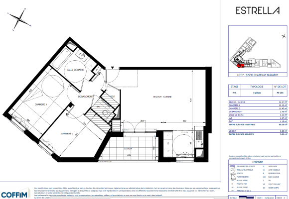 À Châtenay-Malabry au cœur de l’écoquartier LaVallée, dans une résidence neuve certifiée NF HABITAT HQE, à proximité du Parc de Sceaux, des commerces, des groupes scolaires et transports en commun (Tram T10 et RER B Croix de Berny), un appartement de type T3 comprenant une entrée avec espace de rangement fermé, un séjour-cuisine de 32.47 m² avec placard, donnant sur une loggia de 5.89 m², deux chambres dont une avec placard , une salle de bain et un WC séparé. Le bâtiment est raccordé au réseau de chaleur urbain et à la fibre optique. Un ascenseur, un local vélo et un local poussette viennent compléter cette offre.