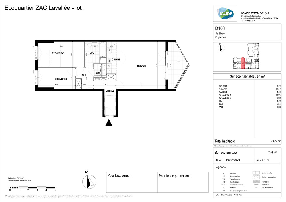 À Châtenay-Malabry au cœur de l’écoquartier LaVallée, dans une résidence neuve certifiée NF HABITAT HQE, à proximité du Parc de Sceaux, des commerces, des groupes scolaires et transports en commun (Tram T10 et RER B Croix de Berny), un appartement de type T3 comprenant une entrée avec placard, une cuisine ouverte sur séjour, un dégagement avec placard, deux chambres dont l’une de 14.05 m², une salle de bain, un WC séparé et une belle loggia donnant sur le jardin paysager. Le bâtiment est raccordé au réseau de chaleur urbain et à la fibre optique. Un ascenseur, un local vélo et un local poussette viennent compléter cette offre.