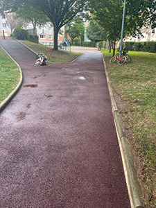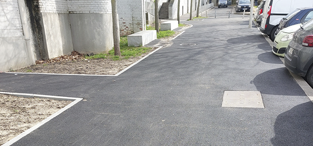 Pose d’un enrobé, allée du Danube, afin de sécuriser les piétons.